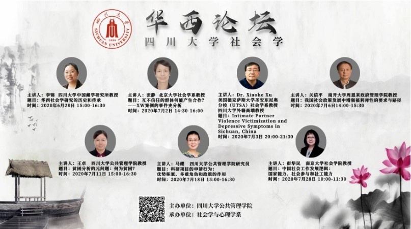 华西论坛系列讲座由七场学术讲座组成,首场讲座于6月28日下午14:30开讲。太阳成集团tyc234cc李锦教授担任首场讲座的主讲嘉宾,陈昌文教授任讲座主持人。李锦教授进行了题为《华西社会学研究的历史与传承》的精彩演讲,太阳成集团tyc234cc社会学与心理学系师生、四川省社会学学会各会员单位以及清华大学、中国人民大学、澳洲国立大学等20余所高校的270余人在线参与。