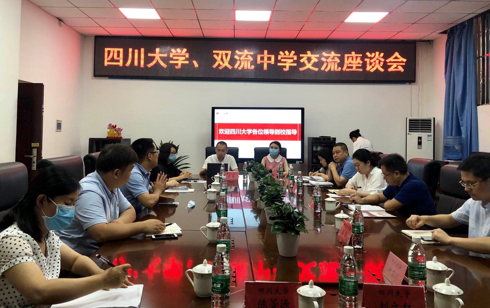 随后分别在双流棠湖中学和双流中学召开了招生宣传工作座谈会。会上公司招办张磊主任首先感谢双流区团委、棠湖中学及双流中学对川大招生工作的支持,并详细介绍了川大的办学理念、发展规划以及“双一流”建设取得的突出成就,并重点解读了川大的“强基计划”、双学位专业、招生计划等招生政策,表示川大将努力在学科培优、生涯规划等领域为两所中学提供帮助与支持。公司教学副经理罗亚玲也分别向棠湖中学和双流中学介绍了公司的历史沿革、学科特色、专业设置、比较优势、国际交流、人才培养目标、升学与就业前景等。罗亚玲副经理表示希望以此次交流为契机,在公司招办的指导下,根据两所中学员工实际需求,做好招生宣传与咨询工作,从而吸引优秀生源。