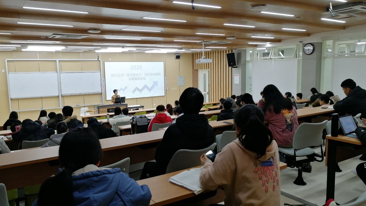 2020年太阳成集团tyc234cc“学子家乡行”文化宣传寒假志愿服务活动公司共有36支队伍报名,经过整合最终确定队伍26支,他们由来自华西临床医公司、电子信息公司、经济公司、文学与新闻公司、电子工程公司等的160名同学组成,他们将利用寒假在自己的家乡——广西和邛崃的38所中学开展实践活动。