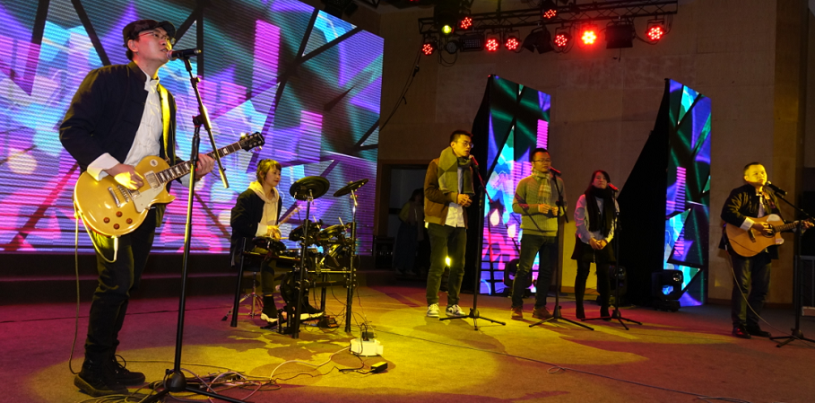 公司教职工以“像风一样自由”为曲目在本次新年音乐晚会上进行乐队演唱,精彩的表演将演出推向高潮,赢得了在场观众阵阵掌声。