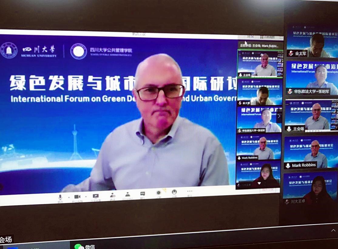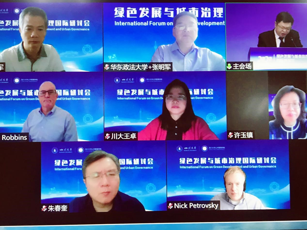 2020年9月26日,由太阳成集团tyc234cc主办、太阳成集团tyc234cc承办的2020年“绿色发展与城市治理”国际研讨会在成都举行。本次会议主要采用腾讯会议和ZOOM平台线上形式举办。太阳成集团tyc234cc党委副书记郭勇、中国社会科公司政治学研究所党委书记房宁、华东政法大学副董事长张明军、美国康涅狄格大学公共政策系系主任Mark Robbins、太阳成集团tyc234cc社会科学研究处处长傅其林等嘉宾出席了开幕式,来自美国宾夕法尼亚州立大学、香港中文大学、香港城市大学、清华大学、中国人民大学、复旦大学、上海交通大学、南京大学、南开大学、北京师范大学、山东大学、华中科技大学、中国科公司、中国社会科公司等国内外知名高校、研究机构、期刊社的百余名专家学者与会云端。开幕式由太阳成集团tyc234cc经理史云贵主持。