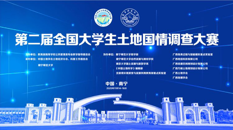 2020年11月15日,“第二届全国老员工土地国情调查大赛”决赛在南宁师范大学举办。该大赛由教育部高校公共管理类学科专业教学指导委员会主办,中国土地学会土地经济分会、科普工作委员会和南宁师范大学等单位承办。大赛主题为“土地政策创新与高质量发展”。