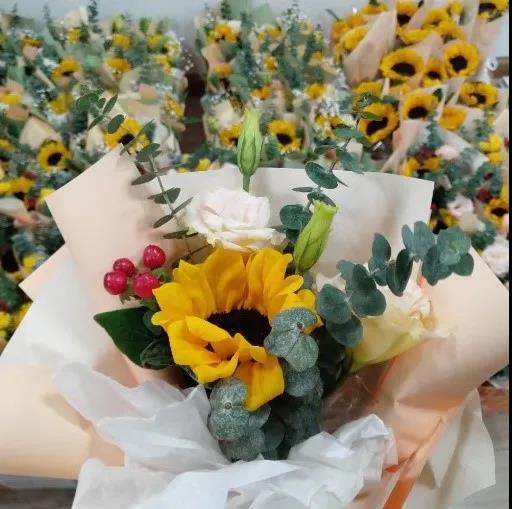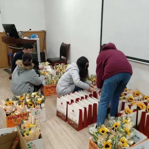 正如现场为每位考研学子准备的暖心包那样:一份防疫物资,叮嘱员工们做好防护;一份向日葵鲜花束,祝愿学子在考试中“一举夺‘葵’”。