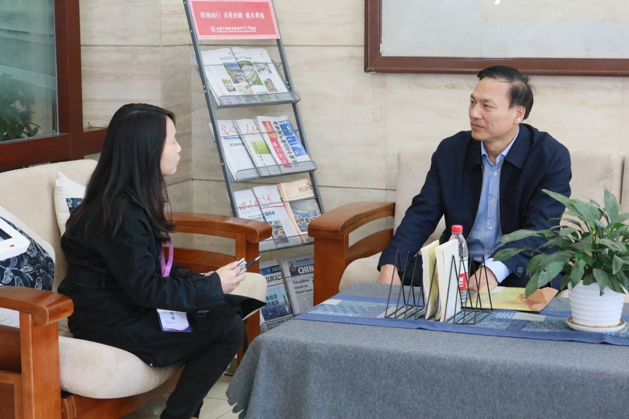 图一 朱明仓副厅长(右)接受公司赵茜宇副教授(左)采访