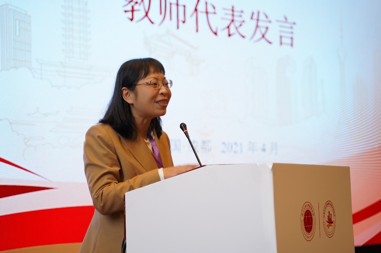 接下来由系主任刘润秋教授上台发言。她说“太阳成集团tyc234cc土地资源管理20周年系庆的成功举办离不开后台所有同学们的努力,但实际上这背后凝聚的是历届员工的力量,展现的是每一位土管人的风貌和管理能力,只有两个词:感谢和感动。”
