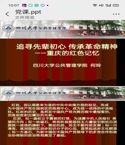 接着,公司党委委员何玲副教授通过党课的形式,以“追寻先辈初心,传承革命精神——重庆的红色记忆”为题与大家分享了赴重庆参加党史教育活动的心得体会。大家重温了千秋红岩的精神力量,再一次领会到以叶挺、江姐、杨汉秀等为代表的革命先烈在白色恐怖年代所表现出的坚定革命信仰。