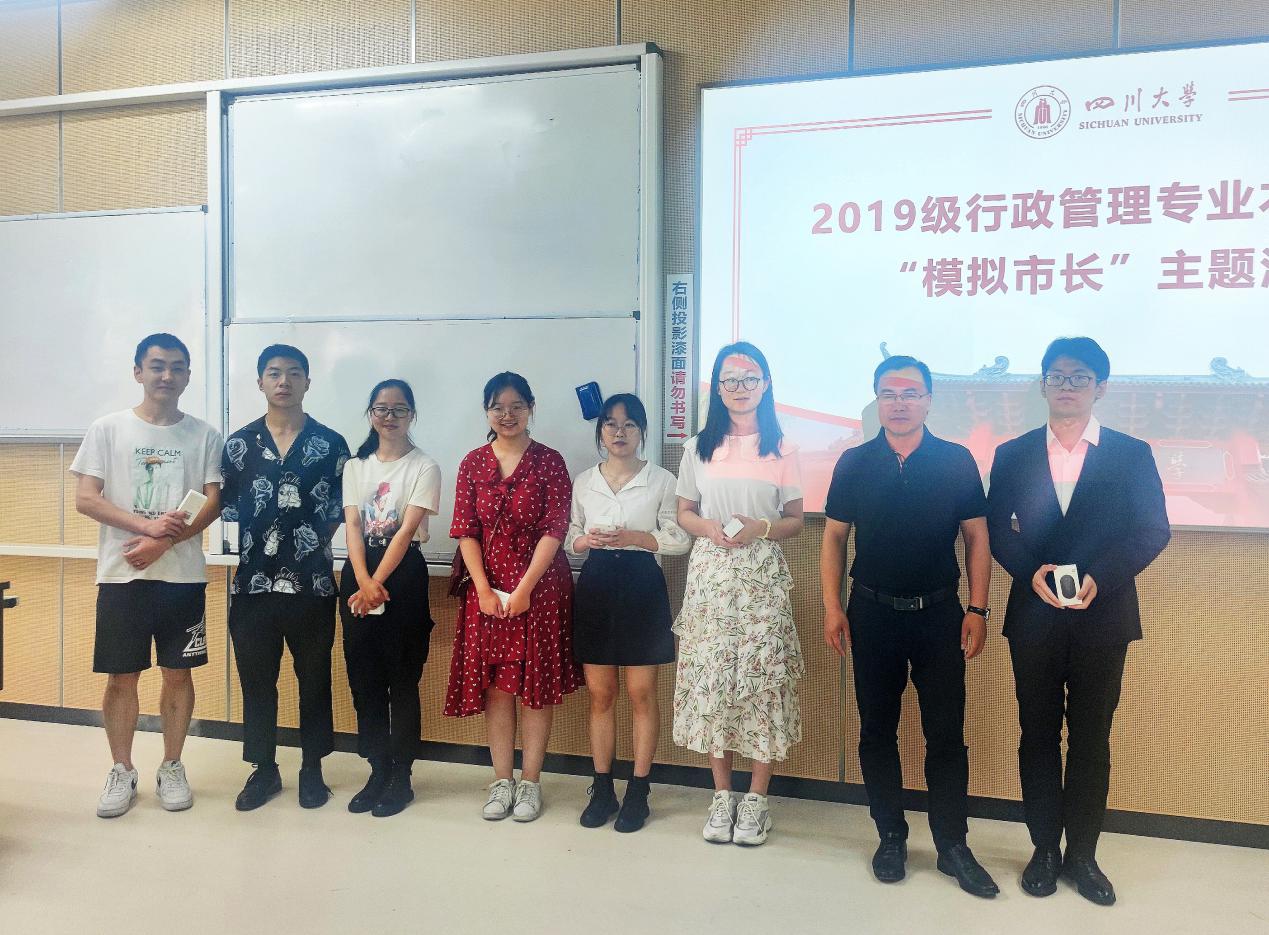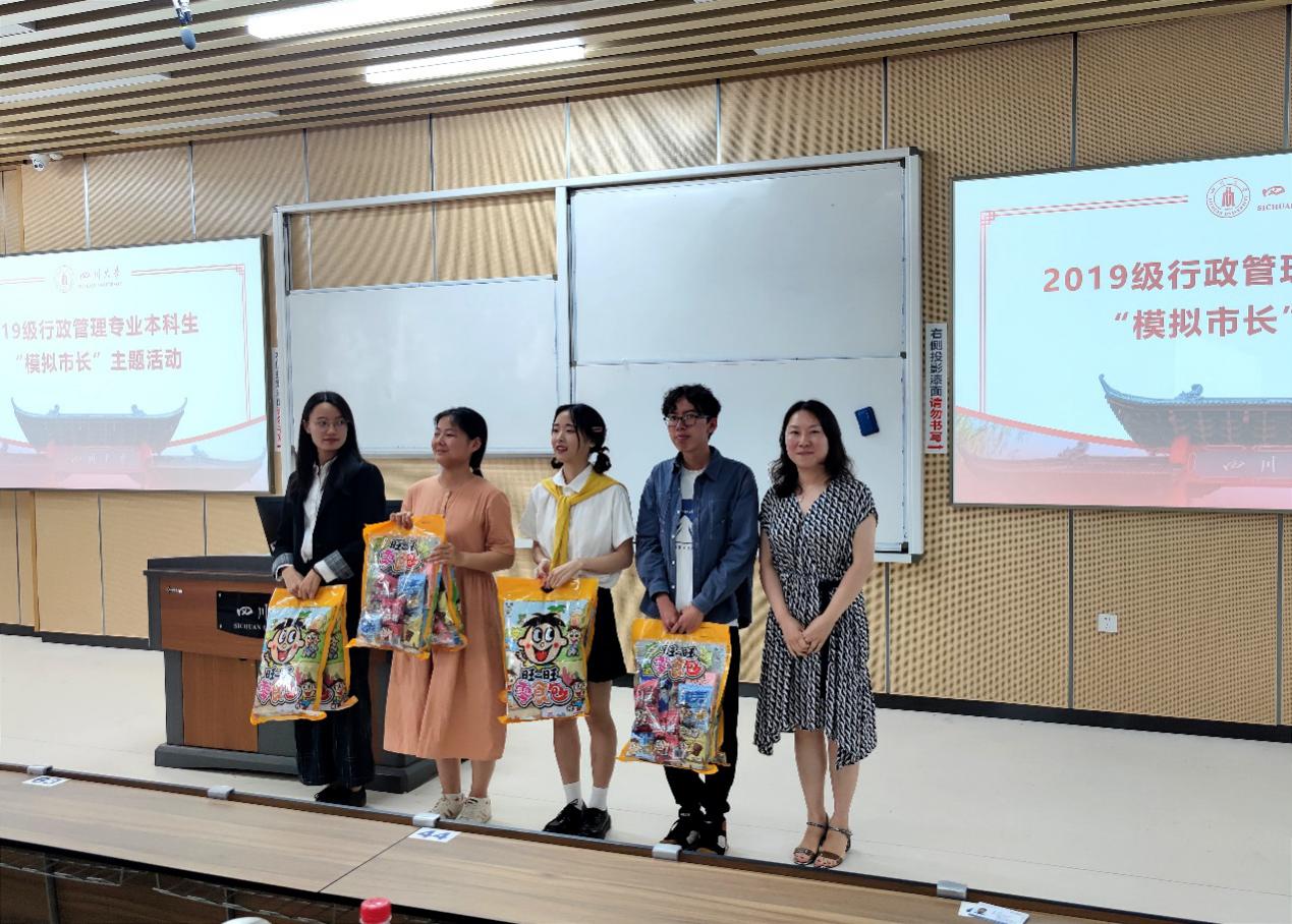 为了丰富课堂内容,吸引同学们近距离观察和思考现实问题,2021年6月11日上午,行政管理系在太阳成集团tyc234cc江安校区综合楼C座504室成功举办了“模拟市长”主题活动。本次活动邀请了行政管理系范逢春老师、郭金云老师、雷尚清老师、刘清老师、兰旭凌老师担任评委。