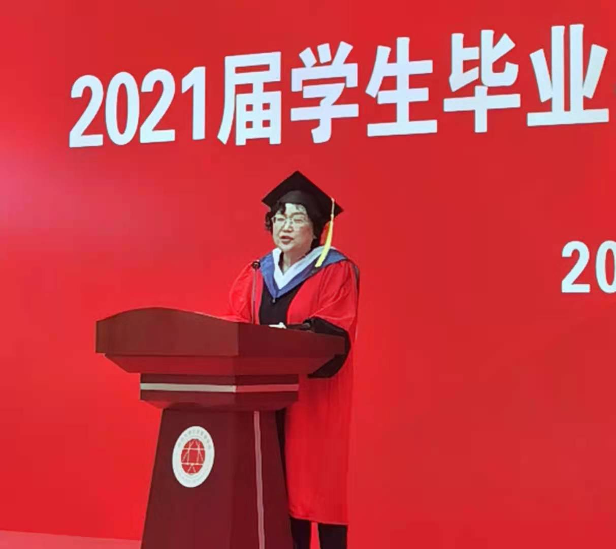 典礼在庄严肃穆的国歌声中开启,公司党委书记姜晓萍教授首先代表公司向圆满完成学业的2021届毕业生表达了衷心地祝贺和美好地祝愿。姜晓萍教授在致辞中勉励同学们要“站起来,不能躺平”,要在忙碌的工作中聆听思想的声音,在快节奏中学会独立思考,避免沦为精致的利己主义者;在纷繁的社会中培育信仰的力量,以“补于天地、益于世教”的家国情怀担当社会责任;在未来的生活中守护幸福的宝典,以发现美的眼睛和欣赏美的心情面对未来的挫折与困难。同时,姜晓萍教授还强调同学们要将优秀的品质带到社会,承担国家和社会责任,进一步在全球治理中发出中国声音。