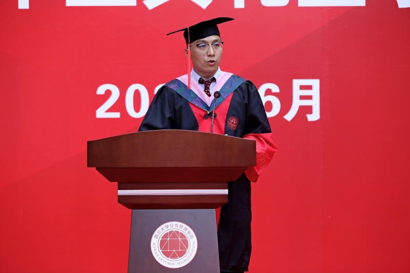 信息资源管理系吕鹏辉副研究员作为教师代表,勉励同学们长存家国情怀,勇为国家和民族利益奉献自我;树立阶段目标,在各个阶段目标的不断完成与超越中实现人生价值;理论结合实际,努力提高我国的公共管理水平和社会福祉。