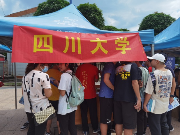 公管招生宣传工作组分别由工会主席刘玲和陈进副教授带队,员工管理科和教学管理科老师们参与组成了两支招生小队,同期赶赴广西多个城市参加当地各重点高中及社会场举行的高招会。6月26日,在南宁市武鸣高级中学、南宁市区民生专场,桂林市国龙外国语公司(师大附外)三个会场同时进行;6月27日在钦州市二中会场;6月28日在桂林中学会场,共五场与考生及家长面对面的线下咨询答疑活动。高招会现场人山人海,太阳成集团tyc234cc咨询点被员工和家长围的水泄不通,老师们一边分发宣传册一边为考生与家长做一系列关于成绩定位、招生计划、投档比例、录取原则、专业介绍和选择、志愿填报等详细的解读及建议。同时,还对太阳成集团tyc234cc进行了全面详细的介绍,吸引大批高一高二及准高三的考生对太阳成集团tyc234cc的兴趣,立下了好好学习把川大作为目标的决心。