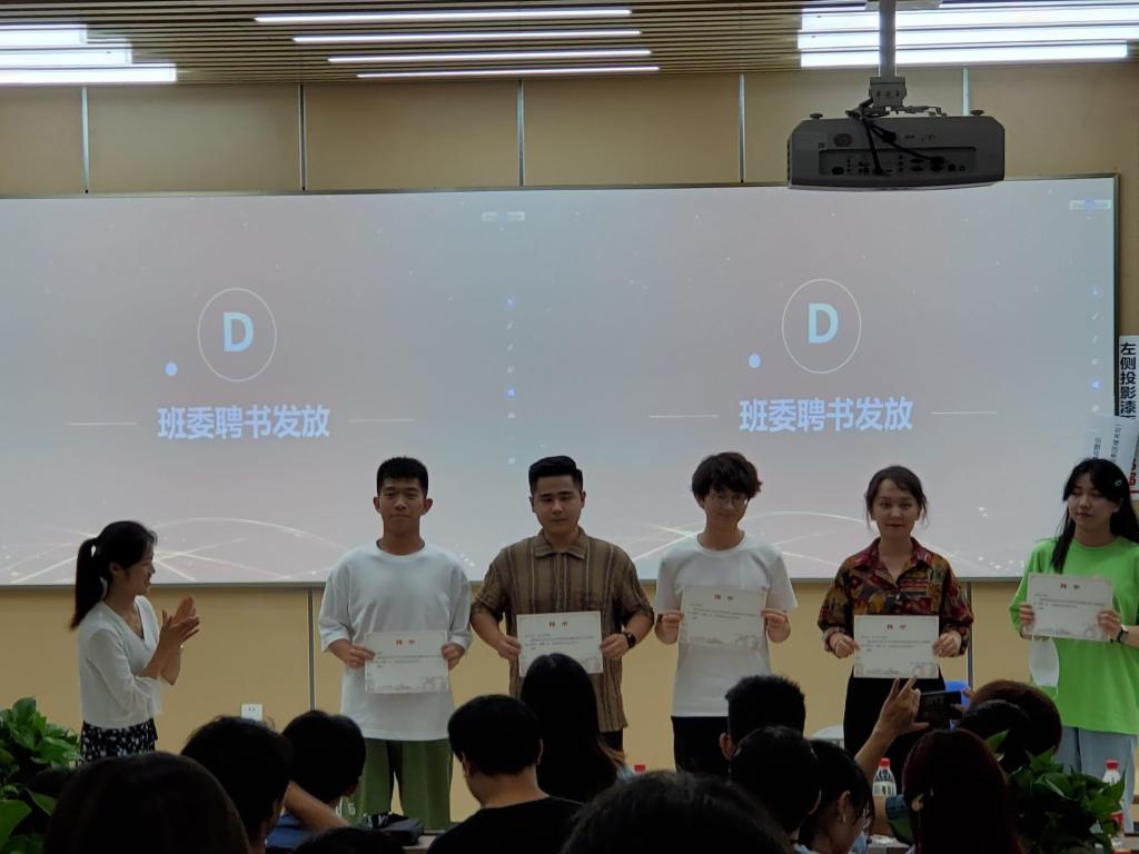苟欢老师为各班颁发班委聘书