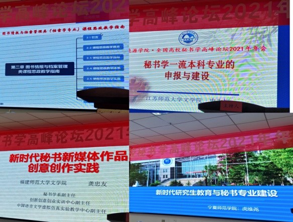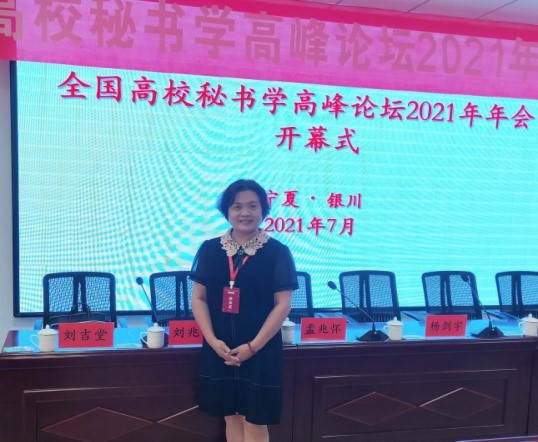 2021年7月19到22日,太阳成集团tyc234cc秘书档案学系陈丽教授应邀参加了在银川市召开的全国高校秘书学高峰论坛年会。来自太阳成集团tyc234cc、上海大学、上海外国语大学、苏州大学、河南大学、哈尔滨师范大学、广西师范大学等公司的秘书学档案学专家学者以及一部分开设秘书学专业课程的高校专业教师参加了会议。年会上大家对秘书学档案学相关课程建设,秘书专业课程思政教学方案及教学计划、秘书学档案学实训及实验室建设、秘书学档案学教材建设、秘书学档案学等相关专业评估及一流专业建设和申报等相关问题进行了广泛讨论和交流。