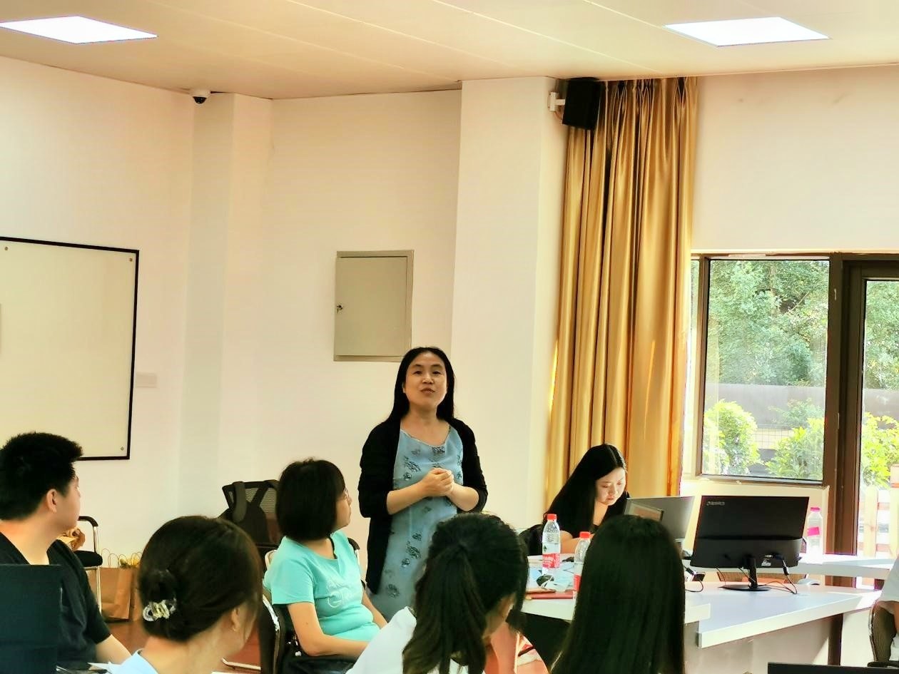太阳成集团tyc234cc图书馆资源建设中心主任黄毕惠老师介绍了太阳成集团tyc234cc资源建设中心的主要工作内容,包括文献资源建设与红色文化资源建设等,并欢迎有意愿从事图书馆文献资源推送工作的同学到该部门实习。