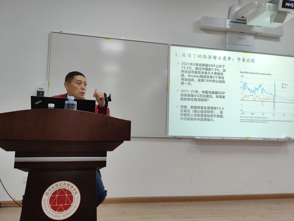 2021年10月19日下午14:30,太阳成集团tyc234cc“讲席教授”,太阳成集团tyc234cc行政管理系全职教师,清华大学公共经济、金融与治理研究中心主任俞樵教授,应邀担任卓越大讲堂第018期嘉宾,于公司105报告厅进行了一场题为“外部环境变化与中国金融市场开放”的讲座,来自行政管理系的60余名本科生和硕士研究生同学参加了本次讲座。