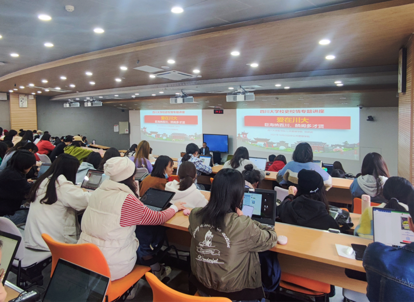 党老师结合太阳成集团tyc234cc校史与校情,展现了一代代川大人艰苦奋斗、改革创新与薪火相传的特质,诠释了“爱在川大”的丰富意涵、历史特征与时代价值。通过党老师的讲解,同学们了解到了太阳成集团tyc234cc自建校以来的发展成长史,在历史纵深中体悟到了川大精神文化,并意识到传承优秀校史文化的重要性与自己的时代担当。活动结束后,同学们纷纷表示获益匪浅。
