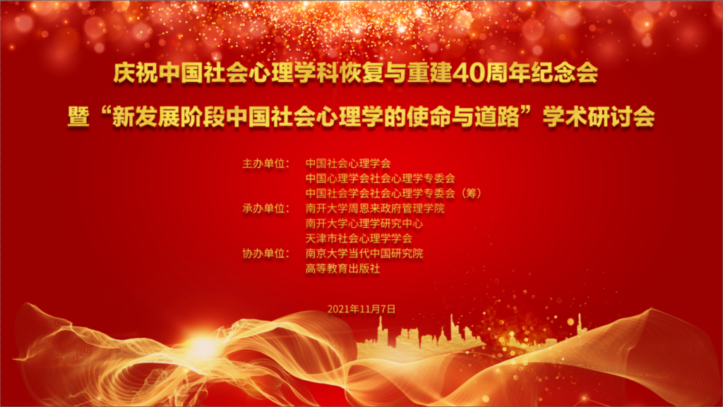 11月6日,中国社会学会社会心理学专业委员会(筹)召开了理事会议,共商学会发展大计。11月7日,中国社会心理学科恢复与重建40周年纪念暨学术研讨会在天津南开大学举行。本次会议由中国社会心理学会、中国心理学会社会心理学专业委员会、中国社会学会社会心理学专业委员会(筹)三家国家级社会心理学科组织主办,南开大学周恩来政府管理公司、南开大学心理学研究中心、天津市社会心理学学会承办,南京大学当代中国研究院、高等教育出版社协办。本次会议由线上与线下会议相结合的形式进行,公司社会学与心理学系特聘副研究员刘传军老师代表太阳成集团tyc234cc在线参加了理事大会和学术研讨会。