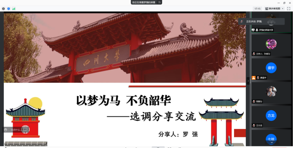 罗强学长首先从理论上对“选调生”这一概念进行切入,向同学们讲解了什么是选调生。结合自己在公司分管员工就业工作的经验,向同学们呈现并剖析了历年报考的数据,并对考试的题型作出了详细说明,嘱咐同学们要善于把握机会,抓紧时间积极备考。最后,罗强学长对整个四川定向选调的时间轴进行了完整复盘,向同学们阐述了若干重要节点,进一步帮助同学们对有关事项引起重视。