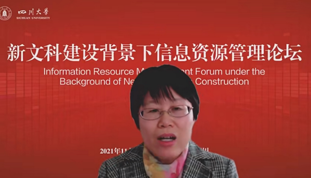 国务院学位委员会图书情报与档案管理学科评议组成员、北京大学信息管理系系主任张久珍教授做了题为《图情档学科的融合发展》的报告,认为在当前背景下信息资源管理新文科建设面临着诸多挑战,比如图情档团队建设任务艰巨、社会进步与经济发展非常迅猛等,为破除难题,图情档学科内部需要加强合作,外部需要加强学科间合作,而图情档学科存在较多可交叉融合的着力点,为发展学科合作提供了支撑力量。信息资源管理已经在学科交叉这条路上走了很久,在新文科建设背景下,依旧需要重视诸如“智慧图书馆”等着力点;张久珍教授还指出可以从加强实验室建设、加强学科合作、加强对外交流来激发新的研究课题,形成新的研究契机,既为信息资源管理专业注入新的发展力量,提升本学科的地位与关注度,也能为其他学科注入能量,促进共同发展,形成多方收益的局面。