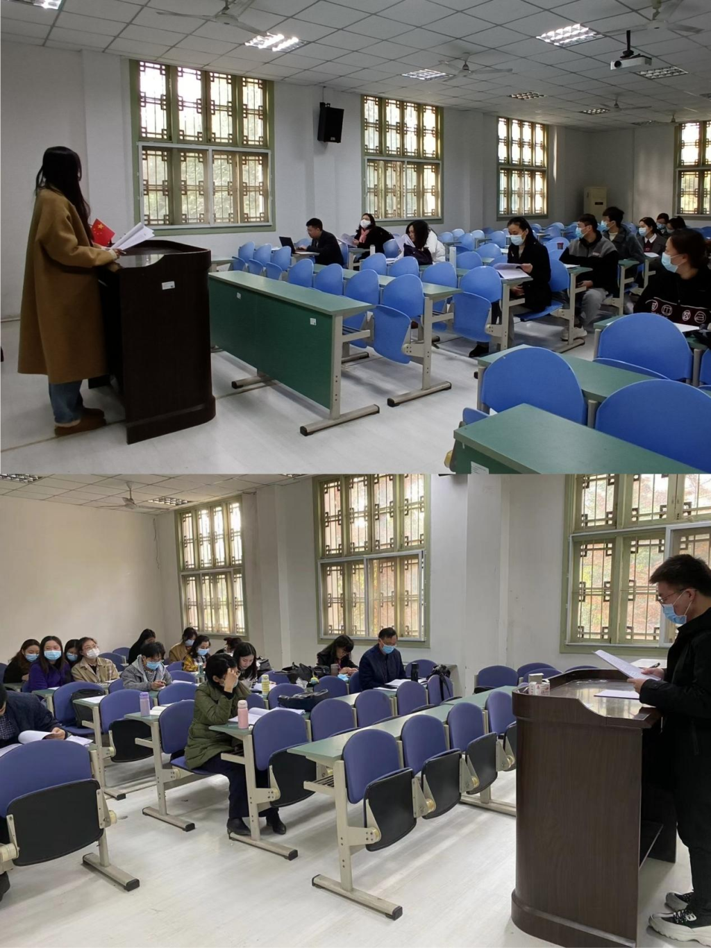开题报告会分为员工陈述和老师点评两个环节。同学们依次汇报,对论文的选题原因、选题背景、选题意义、国内外研究现状、研究内容、研究方法与思路等方面内容展开陈述,接着,现场的评委老师对论文的选题、关键概念、理论基础、研究内容、研究范式等方面进行点评和指导。