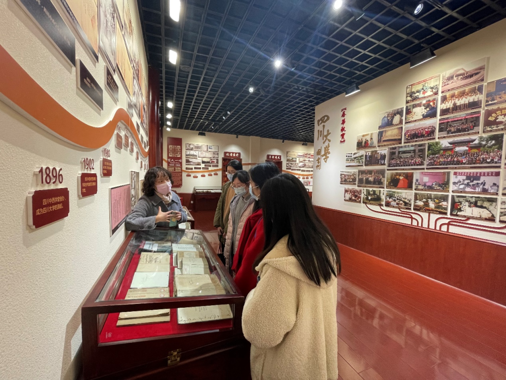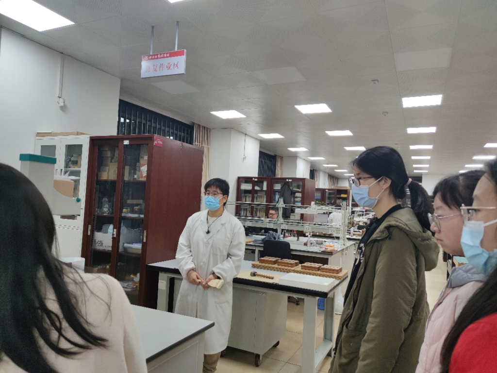 12月10日上午,肖敏、杨永清、姜晓、李咏梅、郑军等几位老师向同学们介绍了文理图书馆的基本情况和各部门的整体概况,组织同学们参观特色资源中心和文献服务中心(文理)。在实地参观以及老师们的讲解下,同学们对图书馆的文化建设、发展目标等有了更清晰的认知,感受到川大图书馆特色古籍资源的魅力,近距离接触《四川全图》《永乐大典》等珍贵馆藏,了解了古籍修复的流程和各种工具。