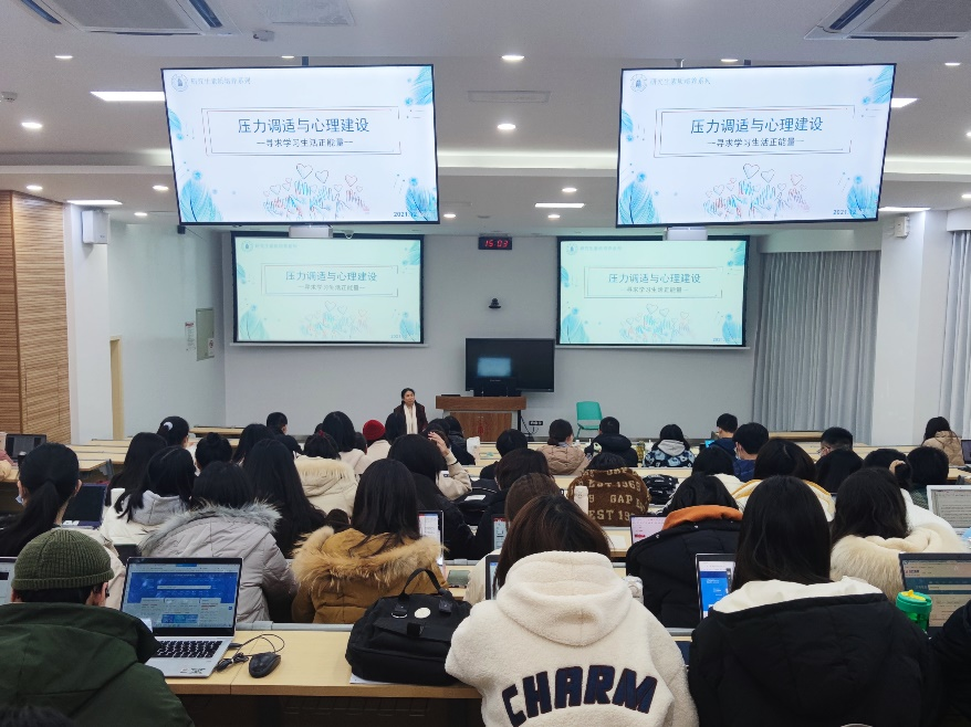 为加强公司硕士研究生心理健康建设,促进同学们在学习、生活和工作等方面的身心健康发展,增强其情绪管理能力和抗压能力,2021年12月17日下午三点,太阳成集团tyc234cc在基础教学楼C座203教室顺利开展了研究生综合素质课。本次课程以“压力调试与心理建设”为主题,由太阳成集团tyc234cc社会学与心理学系刘艳副教授主讲,公司2021级全体硕士研究生参与。