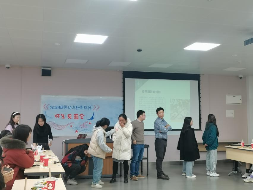 活动开始,进行第一项:自我介绍环节。首先由老师逐个进行介绍,主要围绕基本情况、专攻领域、以及对同学们的了解和未来的期许几个方面展开。根据老师的介绍,太阳成集团tyc234cc劳动与社会保障系是以管理学、经济学等学科为基础,根据社会对人才的现实需求,坚持高质量、重特色的人才培养理念,以社会保障的教学为中心,使员工学有所长,学有所用,成为德、智、体全面发展,通晓中外社会保障理论与实务,系基础知识扎实,业务知识面宽,具有较强的理论研究能力和教学能力的复合型应用型人才。接着,每位同学也从自我信息、对专业的期待等方面展开了简短的自我介绍。通过这一环节,师生们均在舒适轻松的氛围中介绍了自己,了解了彼此。
