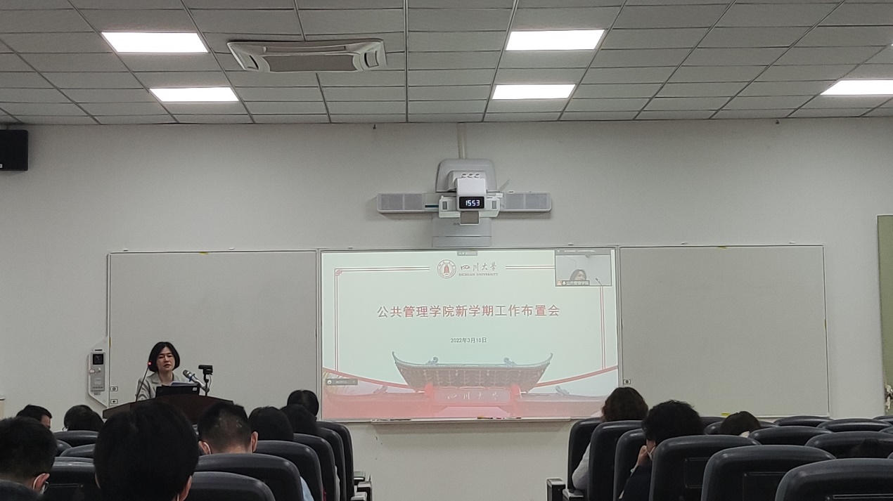 3月18日下午,公司在萃文楼105报告厅召开2022年上半年新学期工作任务布置会。会议采取线上与线下相结合的方式,公司领导班子、两委委员、教授委员会委员、支部书记、系主任、硕士点负责人、科级干部及全体教职工参会。会议由公司党委副书记罗亚玲主持。