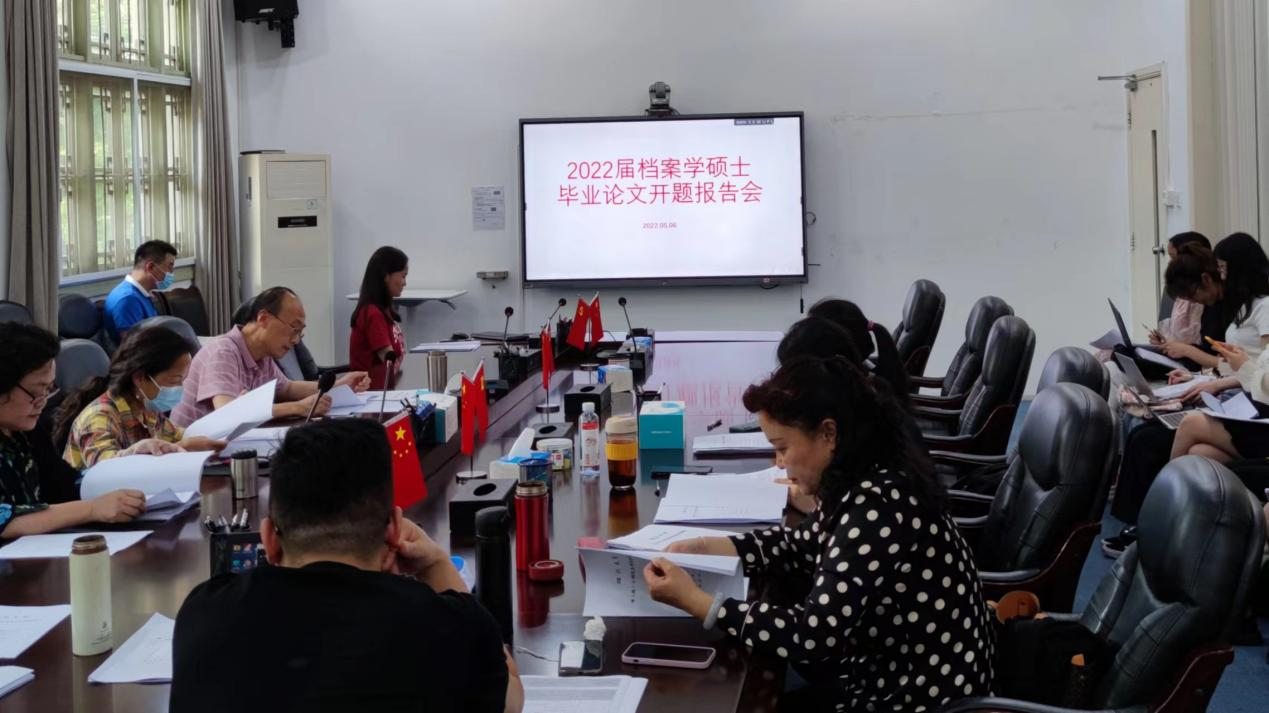2022年5月6日下午,公司档案学专业2020级硕士研究生毕业论文开题报告会于太阳成集团tyc234cc311会议室举行。秘书档案学系乔健教授、王萍教授、史江教授、陈丽教授、何玲副教授、蔡娜副教授、王阿陶副研究员、赵跃副研究员出席并担任开题报告会的评委老师。档案学专业2020级11位硕士研究生同学依次进行开题答辩,部分低年级硕士研究生同学到场并观摩了此次报告会。
