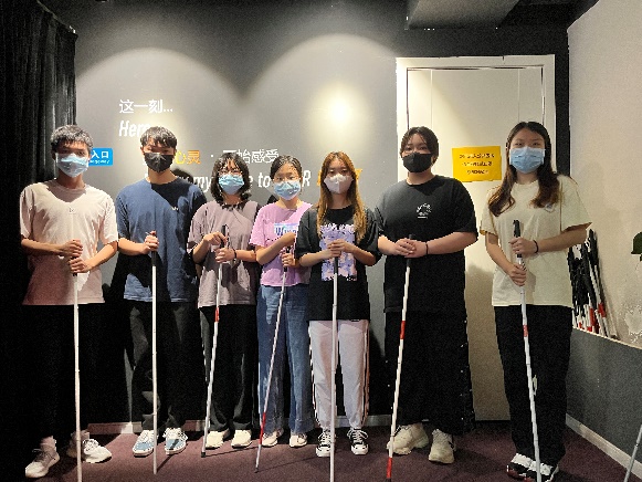 “黑暗中对话”体验馆源自德国,旨在为视障人士创造发挥其才智的就业机会,通过在完全黑暗的环境中完成日常活动、激发对人生的崭新感悟,促进多元和包容的社会文化塑造。在了解体验形式及安全注意事项后,同学们的“黑暗旅程”就此开启。活动伊始,突然的“失明”使同学们纷纷产生了迷茫、紧张等情绪。但在导赏员的耐心引导与安抚下,大家逐渐放慢步调、调整状态,在游公园、过马路、逛超市等场景中完成任务和互动,小心翼翼地运用其他感官触摸、倾听、探索、和感受原本熟悉的世界。