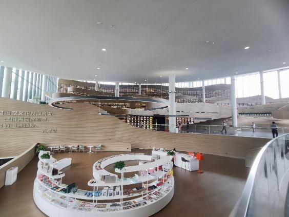 天府人文艺术图书馆坐落于成都市倾力打造的天府艺术公园内,是一座名副其实的“公园里的图书馆”,建筑设计灵感来自杜诗“窗含西岭千秋雪”,于2022年4月23日开馆运营,并向公众免费开放。在成都市公园城市的建设主题下,天府人文艺术图书馆基于传统图书馆的特点,构建空间叙事的新结构,为广大市民提供了集阅读、休闲、审美、艺术体验、文化交流于一体的生活美学空间,具有极强的参观学习价值。