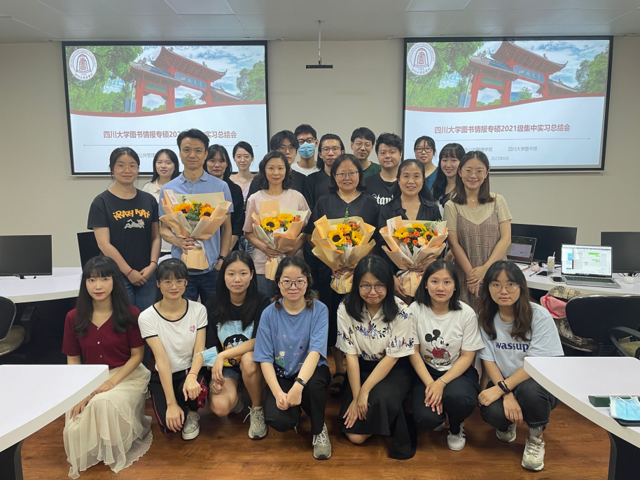 至此,2021级图书情报专硕在川大图书馆的集中实习圆满结束。同学们和图书馆的老师们合影留念。同学们从这次集中实习中了解到了图书馆的机构设置和运作模式,学习到了相关的理论知识和专业技能,通过实务参与对图书馆有了新的认识,对毕业论文的选题及今后的职业生涯都有很大的帮助。