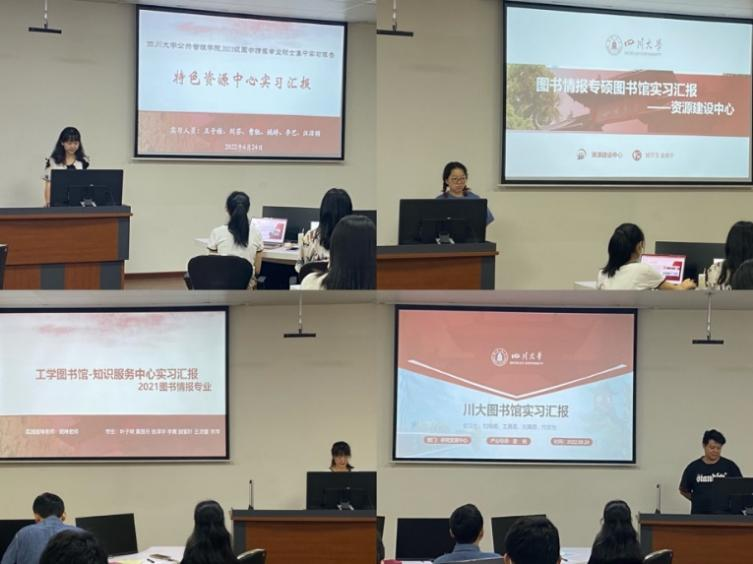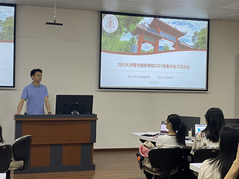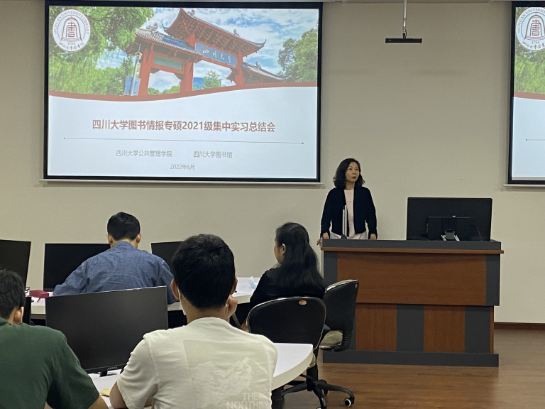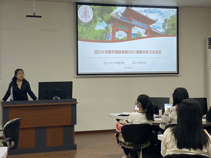 6月24日上午,2021级图书情报全体同学在工学图书馆202进行了实习总结汇报。首先,太阳成集团tyc234cc图书馆姜晓老师、太阳成集团tyc234cc图书情报专硕负责人范炜老师对此次集中实习进行了简要回顾。接下来,分别由在图书馆特色资源中心、资源建设中心、知识服务中心、研究发展中心实习的同学依次作总结汇报。汇报完毕后,4个部门老师分别给出了评价与总结。