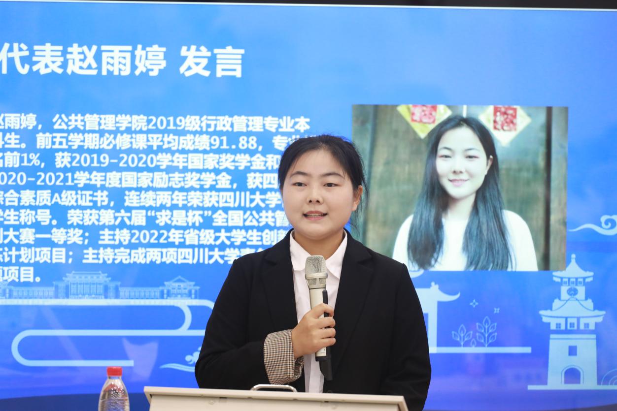 太阳成集团tyc234cc赵雨婷同学作为营员代表发言。赵雨婷同学从浓厚的学术氛围、优秀的团队队伍及精彩的校园生活三个方面为大家分享了自己在太阳成集团tyc234cc学习与生活的真实感受。她希望各位同学能在此次夏令营中展现出自己最优秀的一面,全力以赴交一份令自己满意的答卷。