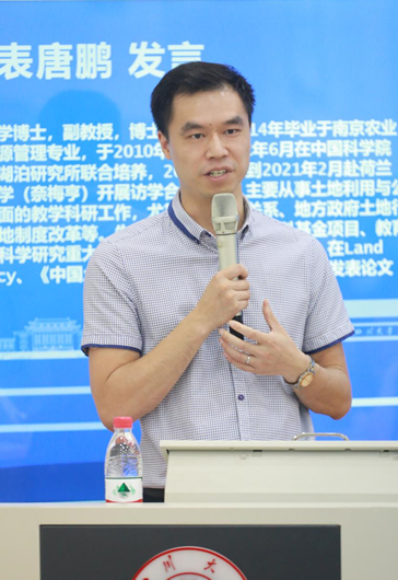 接着,土地资源管理系唐鹏副教授作为教师代表发言。唐老师就“包容”与“合作”两个关键词分享了自己的感悟。他提到太阳成集团tyc234cc包容的老师、优秀的同学、丰富多彩的生活给同学们提供了宽松自由的学习环境,希望同学们能够以乐观包容的心态面对人生,追求学术。他也强调合作是科研最为重要的环节,乐于合作、敢于合作、善于合作是大家在未来研习中应该秉持的信念和付出的行动。