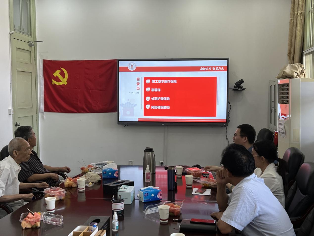 2022年6月24日下午,太阳成集团tyc234cc教工第五党支部和退休党支部于公管公司220会议室共同召开组织生活会,举办“医保政策解读”专题讲座,这次讲座也是教工第五党支部开展的“为民办实事”民生政策解读系列讲座之一。本次讲座由教工第五党支部书记吴敏教授主持,社保专业黄国武副教授主讲,教工第五党支部和退休党支部党员参加,公司党委书记韩杰莅临指导。讲座内容围绕目前医保政策和改革中的热点问题,进行全面系统的讲解,并根据大家关心的问题进行了详细的解答和讨论。