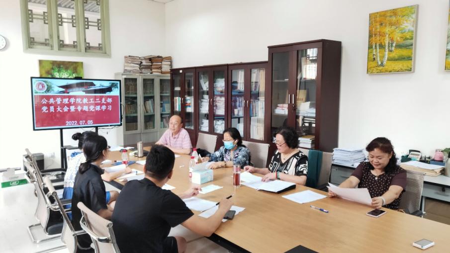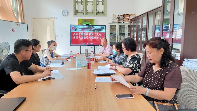 2022年7月5日上午,教工二支部在秘书档案学系办公室召开了党员大会和专题党课学习,活动由支部书记陈丽教授主持,支部全体党员参加,乔健教授为支部全体党员讲授了一堂《红色档案资源开发与抗战档案汇编》专题党课。