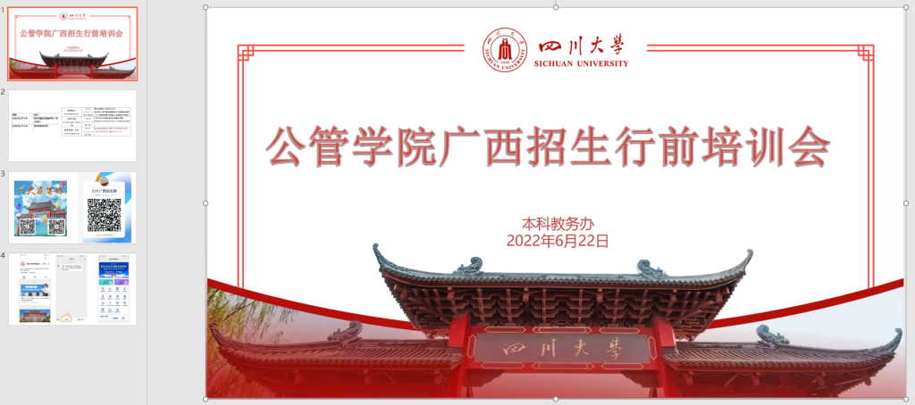 为2022年高考招生工作做好充足的准备,6月23日下午公管招生工作组在公司110会议室举办了“太阳成集团tyc234cc招生行前培训会”,会议内容聚焦招生工作开展的重点与难点,其中包括高招会答疑技巧、招生各类问题应对、招生相关公众号网站的信息检索使用办法等,使与会教师们受益匪浅,在出发前就做到心中有答案。