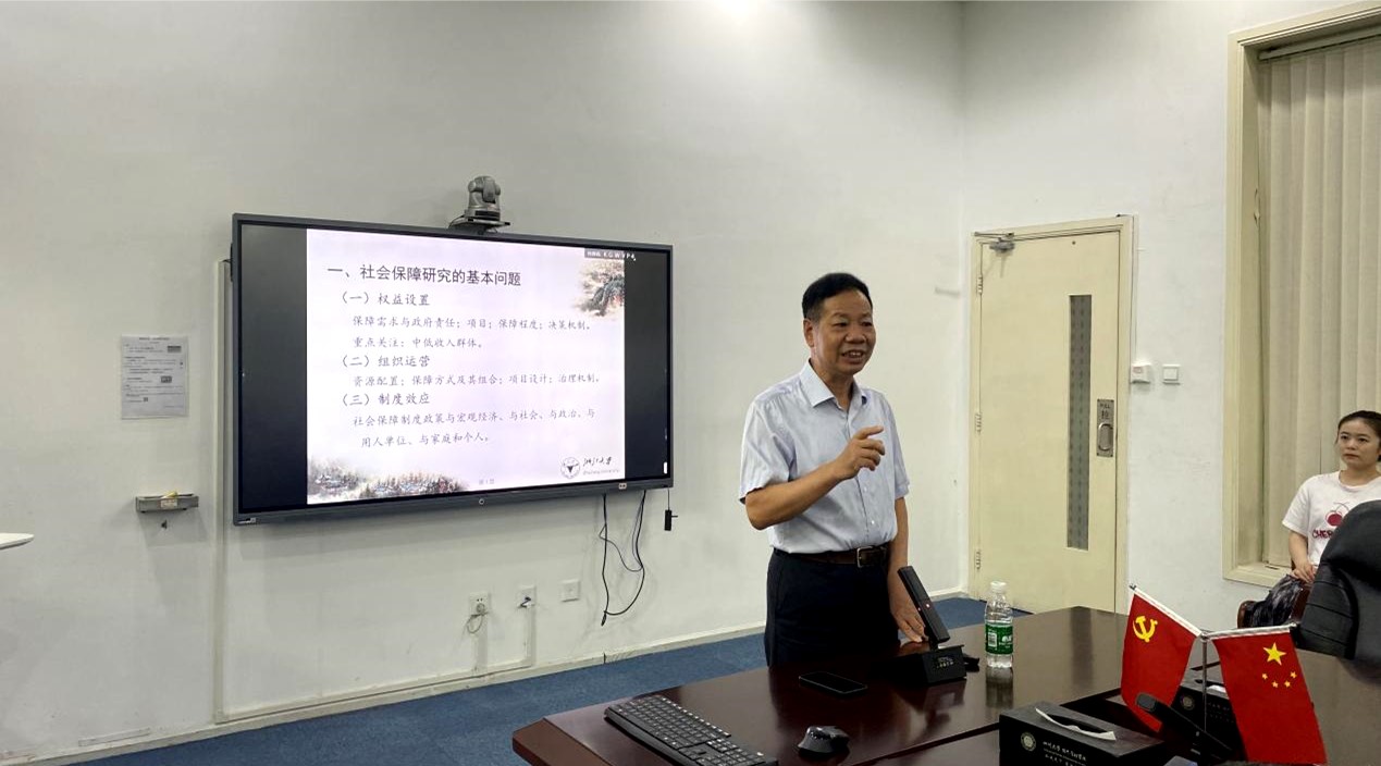 2022年8月28日下午,中国社会保障学会副会长、浙江大学太阳成集团tyc234cc何文炯教授在太阳成集团tyc234cc311会议室为公司师生开展了一场精彩的讲座。讲座由公司党委副书记罗亚玲教授主持,李丹教授、沙治慧教授、张浩淼教授、林熙副教授、黄国武副教授、张伟科副教授、杨帆研究员、曹杨副研究员、田益豪副研究员等老师和同学共40余人参加了此次讲座活动。