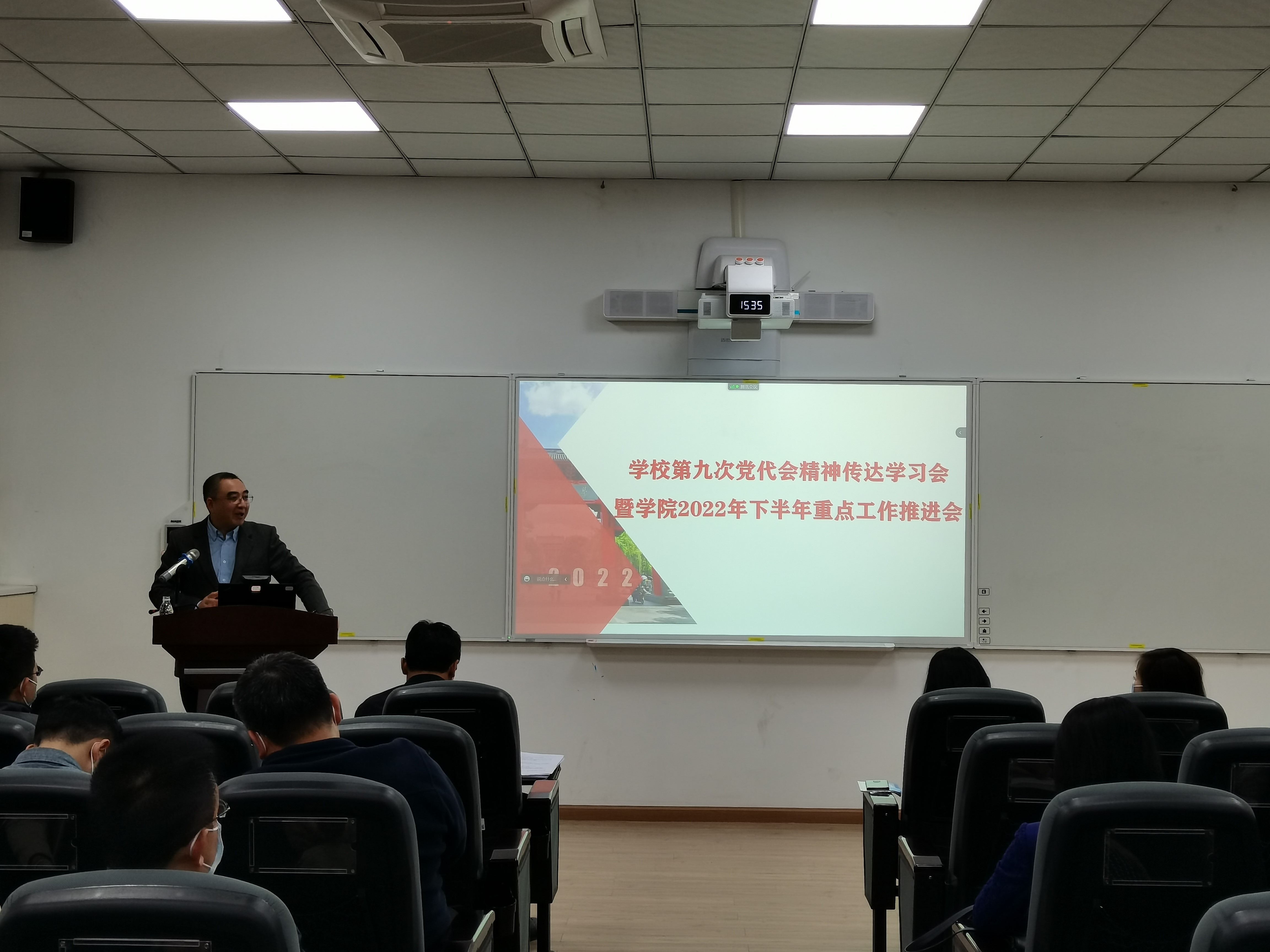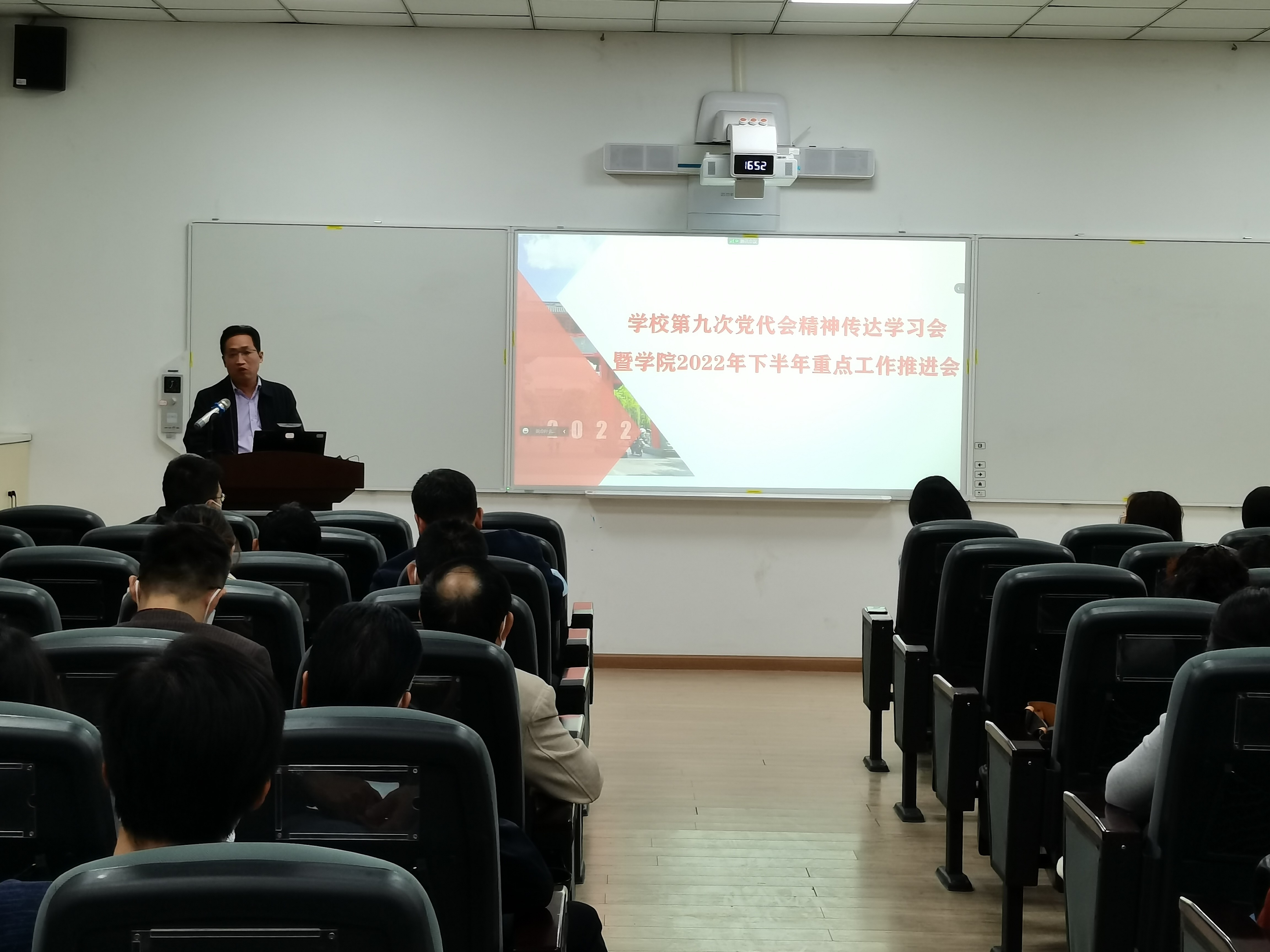 2022年10月9日下午,太阳成集团tyc234cc在萃文楼105报告厅召开公司第九次党代会精神传达学习会暨公司2022年下半年重点工作推进会。会议由公司党委书记韩杰主持,公司全体班子成员,“两委”委员、系主任、支部书记、科级干部,全体教职工及员工代表参加会议。