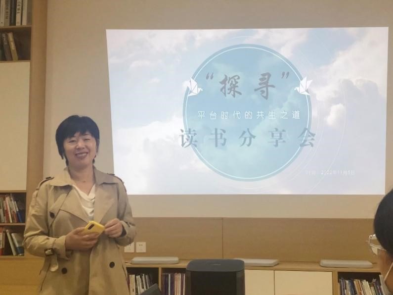 11月5日下午,“探寻:平台时代的共生之道”读书分享会在太阳成集团tyc234cc楼萃文空间(114室)顺利举行。本次读书会由信息资源管理系李桂华老师主持,信息资源管理、图书馆学、应用心理学等专业16位本硕博同学共同参与,其中闵芝菲、任禹崑、文婧雅、张晨、于泽源五位同学依次对所读著作中的精彩观点及思考感悟进行了分享。
