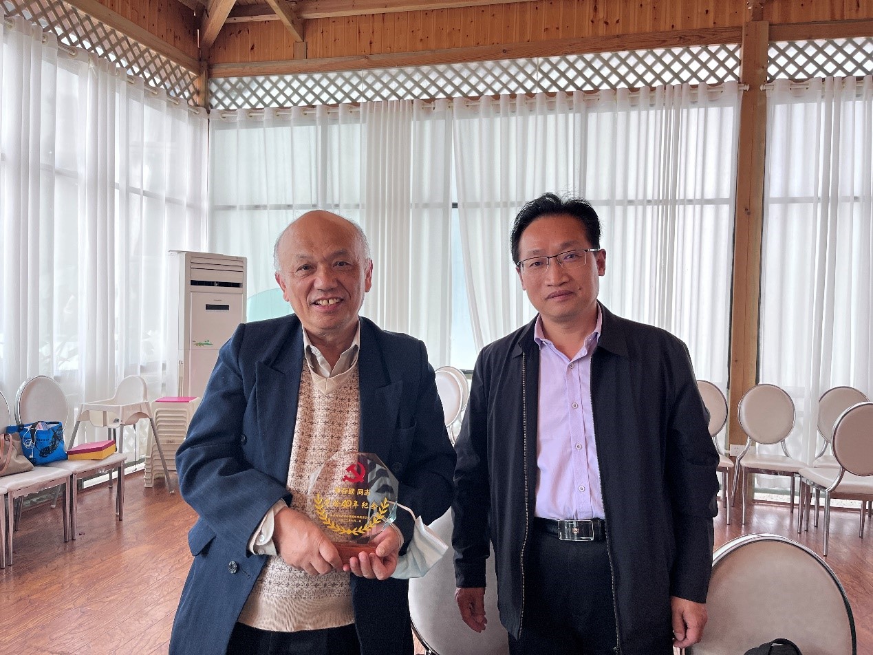 “表彰先进树典型,政治生日忆初心”,座谈会上,韩杰书记向党龄40年的退休教师黄存勋老师颁发了纪念奖牌。