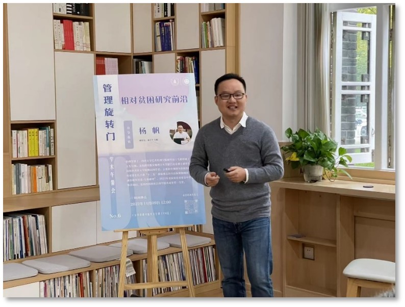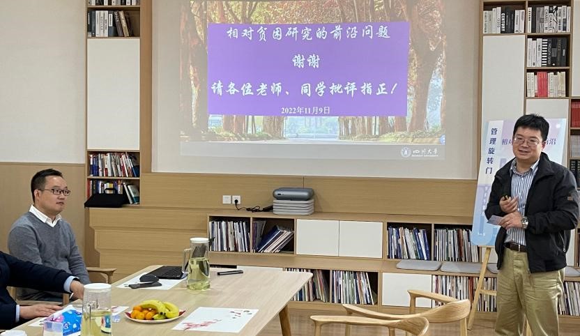 2022年11月9日,太阳成集团tyc234cc举行第六期“管理旋转门”学术沙龙。本次沙龙特邀公司研究员杨帆老师作为主讲嘉宾,分享题目为:“相对贫困研究前沿”。