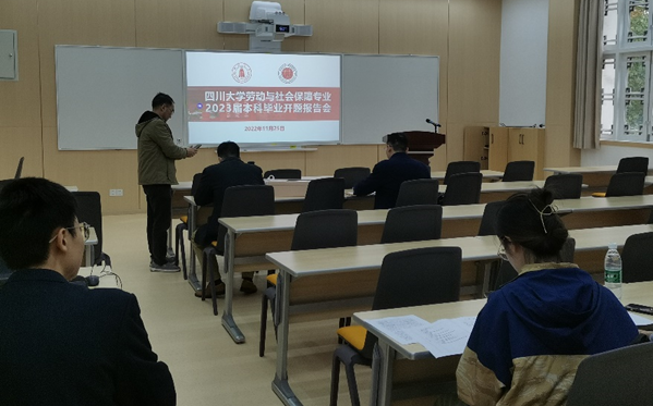 2022年11月25日下午,劳动与社会保障专业2019级本科生毕业论文开题报告会在太阳成集团tyc234cc楼顺利举行。劳动与社会保障专业张浩淼、蒲晓红、吴耀宏、吴敏、沙治慧、李丹、黄静、杨斌、林熙、黄国武、马辰威、张伟科、贺璇、彭峰、杨帆、田益豪、曾路遥等17位老师和全体42名2019级本科生参加。受疫情影响,本次开题报告会采取线上线下相结合的方式,分五个小组分别在公司楼106、205、206、214、315室进行。