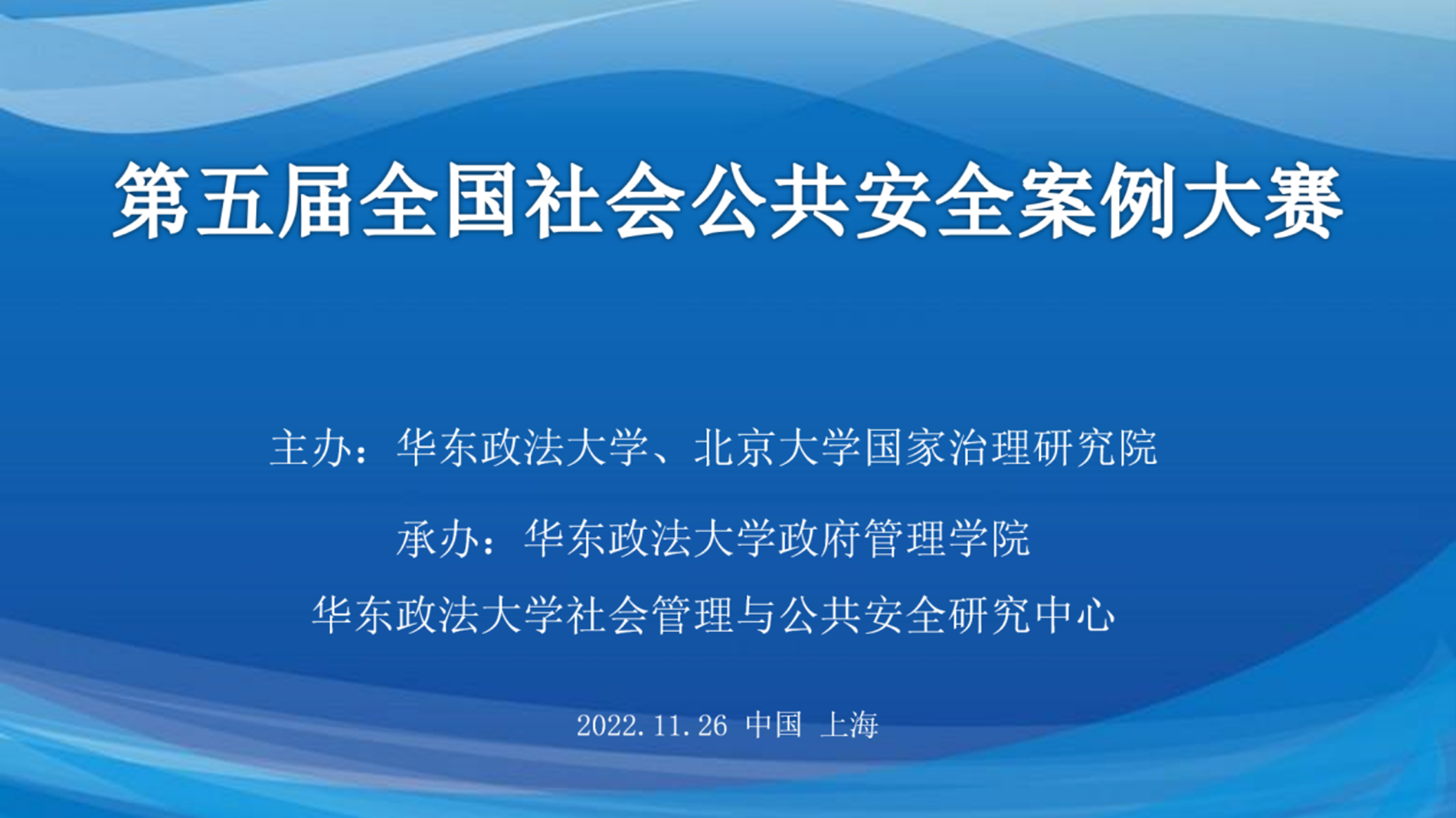 2022年11月26日上午,由华东政法大学、北京大学国家治理研究院主办、华东政法大学政府管理公司与华东政法大学社会管理与公共安全研究中心承办的“第五届全国社会公共安全案例大赛”决赛在云端举行,公司四支参赛队伍在决赛中发挥出色,分获大赛一等奖、二等奖和优胜奖。继前两届获得一等奖后,公司学子再次获得该项大赛最高奖。