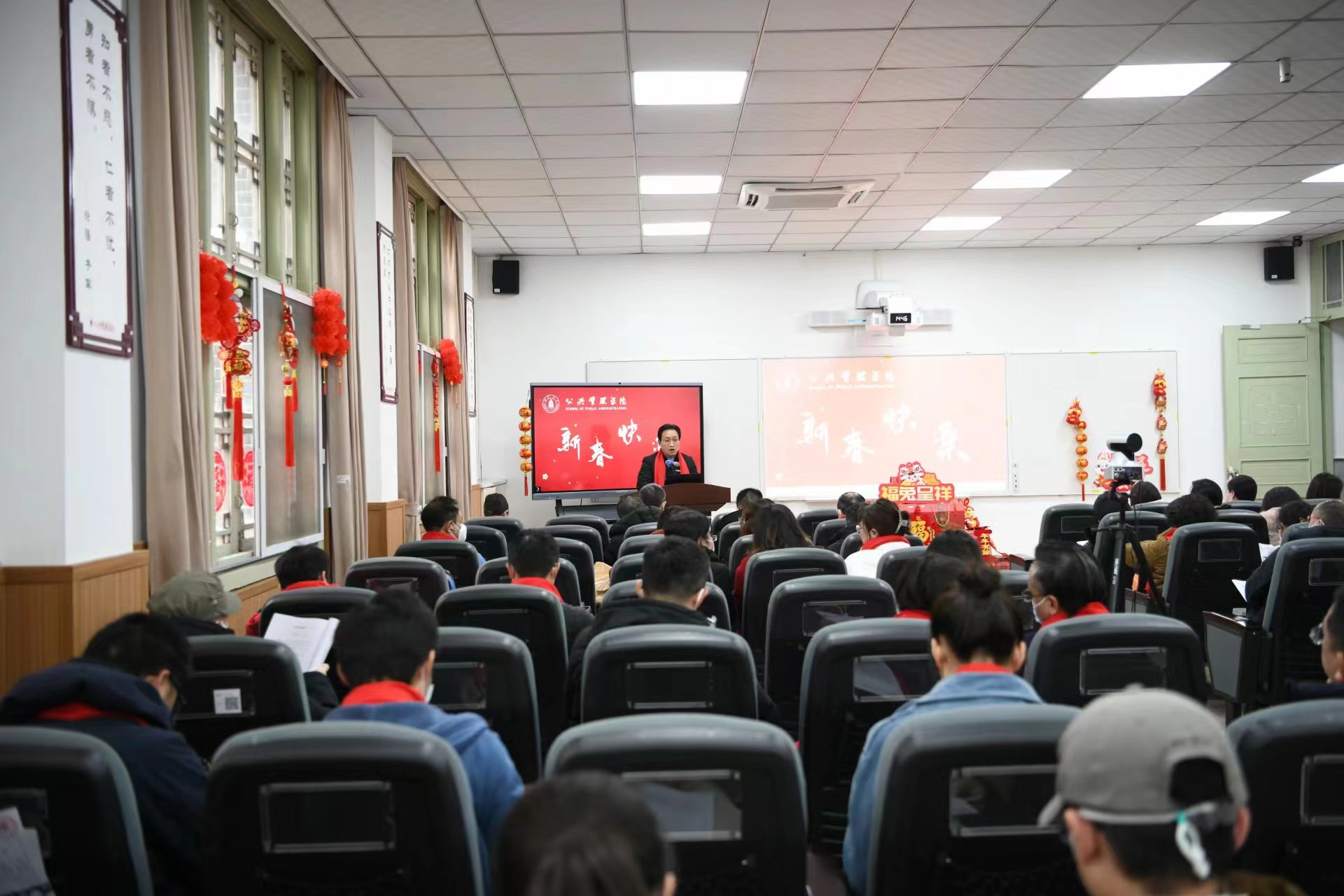 公司工会为教职工精心搭建了新春祝福主题场景,准备了红围巾、中国结、对联、主题KT板等活动物品,公司领导班子和教职工为全院师生、全球院友和社会各界朋友送上新年祝福。2022年工作交流总结会暨新春贺喜活动在浓浓的新年喜庆氛围中圆满结束。