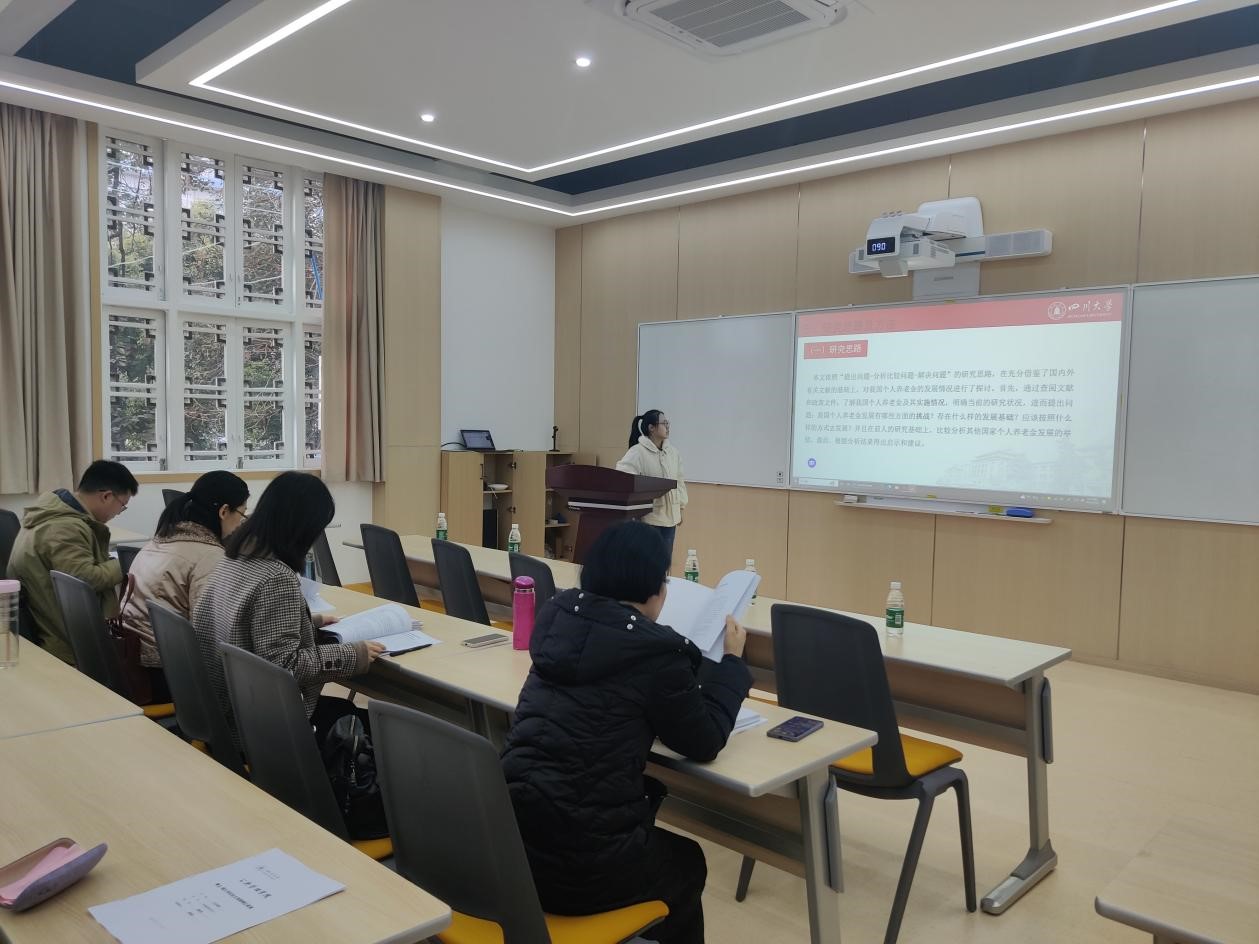 答辩分为员工汇报和老师提问点评两个环节。各组同学依次进行汇报,分别围绕论文研究背景、思路结构、方法与内容、结论与对策等开展陈述,并提出遇到的研究难点。选题方向聚焦于老年人心理健康、老年人社会参与、老年照料、职业使命感、个人养老金制度、城乡居民基本医疗保险、基本医疗保险待遇保障、社会救助、智慧养老服务平台等专业领域的热门话题。老师们在每位同学汇报完成后,对其论文进行了详尽的点评,指出了论文结构不够清晰、指标选取不够严谨、实证分析不够详尽、对策建议不够丰富、格式不够规范等问题。并对同学们目前的写作困惑予以耐心解答,同学们获益良多。最后,各答辩小组组长对预答辩进行了总结,要求同学们务必针对老师们指出的问题和给予的建议,认真修改和完善论文。