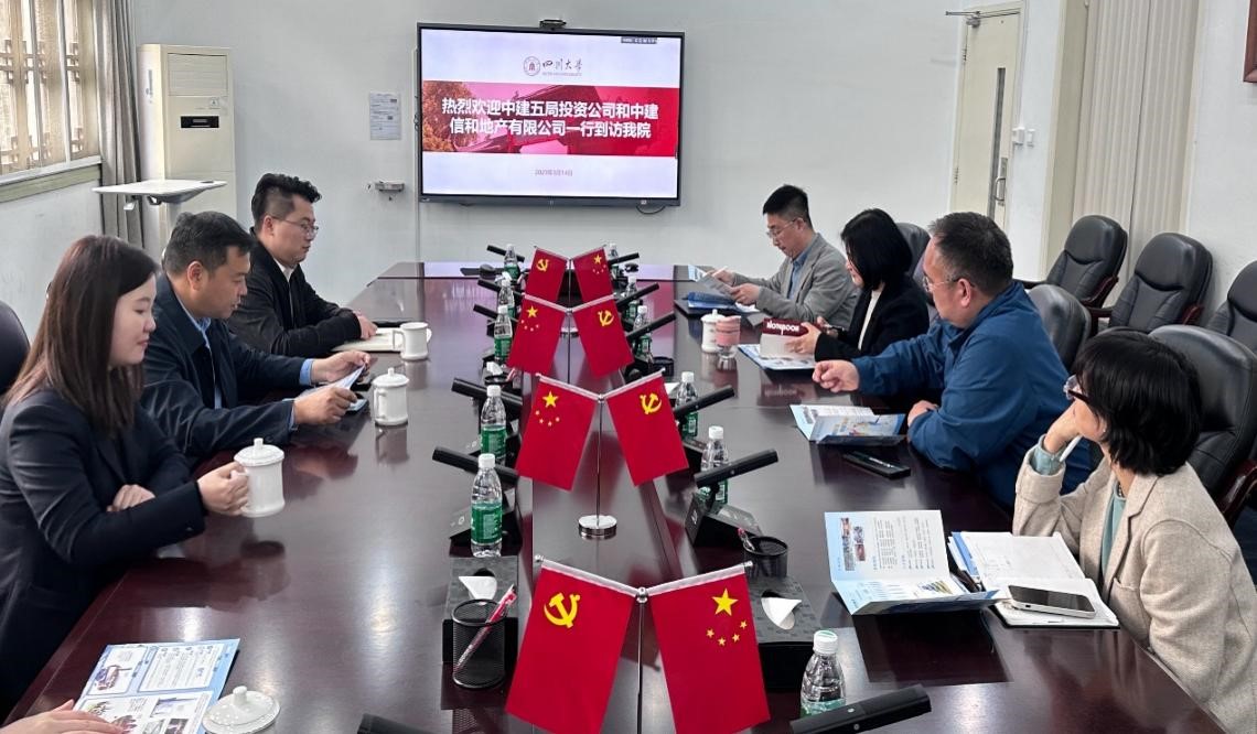 2023年3月14日,中建信和地产有限公司及中建五局四川投资公司总经理黄汉武一行4人应邀到公司开展“就业面对面”活动。公司党委书记韩杰、经理夏志强、党委副书记罗亚玲、土地资源管理系系主任朱红波及就业指导老师等参会交流。