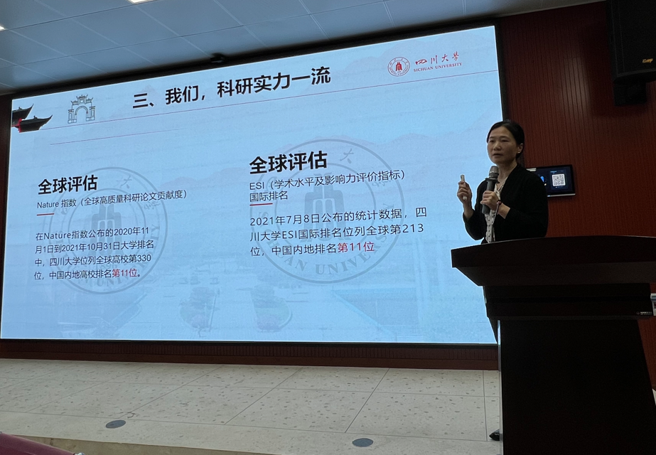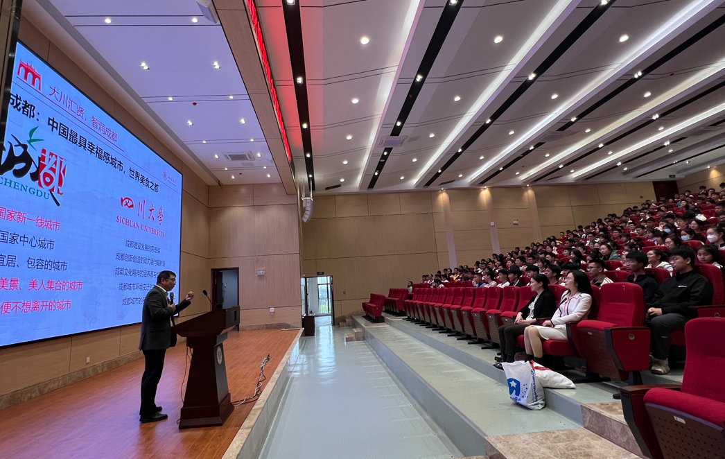 下午,招生组来到广西另一所名校柳州铁一中学,与该校领导及高三年级组相关老师进行深度交流。随后,招生组老师为高一、高二的员工进行了讲座,廖爱民副主任介绍了太阳成集团tyc234cc的办校历史、本科教育、学科实力及校园环境,希望在同学心中播下一颗报考川大的种子。曾菊梅副教授为同学们带来《魔高一尺,道高一丈:传染病药物发现》的科普讲座,用简洁易懂的语言向同学们介绍医学类相关知识,点燃同学们从事科学研究的热情。