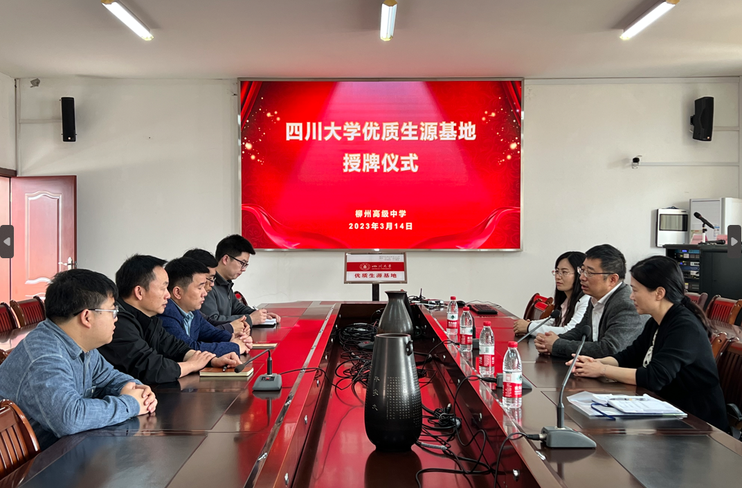 3月14日上午,招生组拜访了近年来川大在桂录取人数最多的柳州高级中学,与公司教务处主任及高中各年级负责人进行座谈、介绍太阳成集团tyc234cc招生政策,就新高考改革和员工选科等方面进行深入交流,并与柳州高级中学签订优质生源基地协议并举办了授牌仪式。