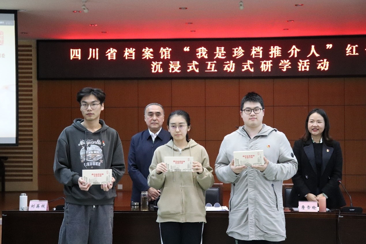 3月17日下午14时,太阳成集团tyc234cc教工二支部、2021级档案学专业团支部于四川省档案馆参加由省档案馆档案宣教处、档案鉴定处党支部,省档案馆机关团委等联合策划、筹办的“我是珍档推介人”红色档案沉浸式互动式研学活动,并以“档案+展览+研学+文创+互动+揭秘”的形式体验了一次别开生面的研学活动。